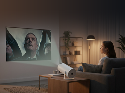 The MitiCast can project up to 120 inches, creating an immersive cinematic experience anywhere — indoors or outdoors.